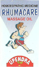 3. RHUMA CARE OIL (Pain Oil) Composition : Arnica Montana Q, Gaultheria procl (Gaultheria)Q, Eucalyptus G Q, Mentha piperata Q, Camphora Q Indications : Excellent relief from lumbago, sciatica, stiffneck, gout and rheumatic pains and joint swellings helps in bruises, sprains, strains and falls etc |